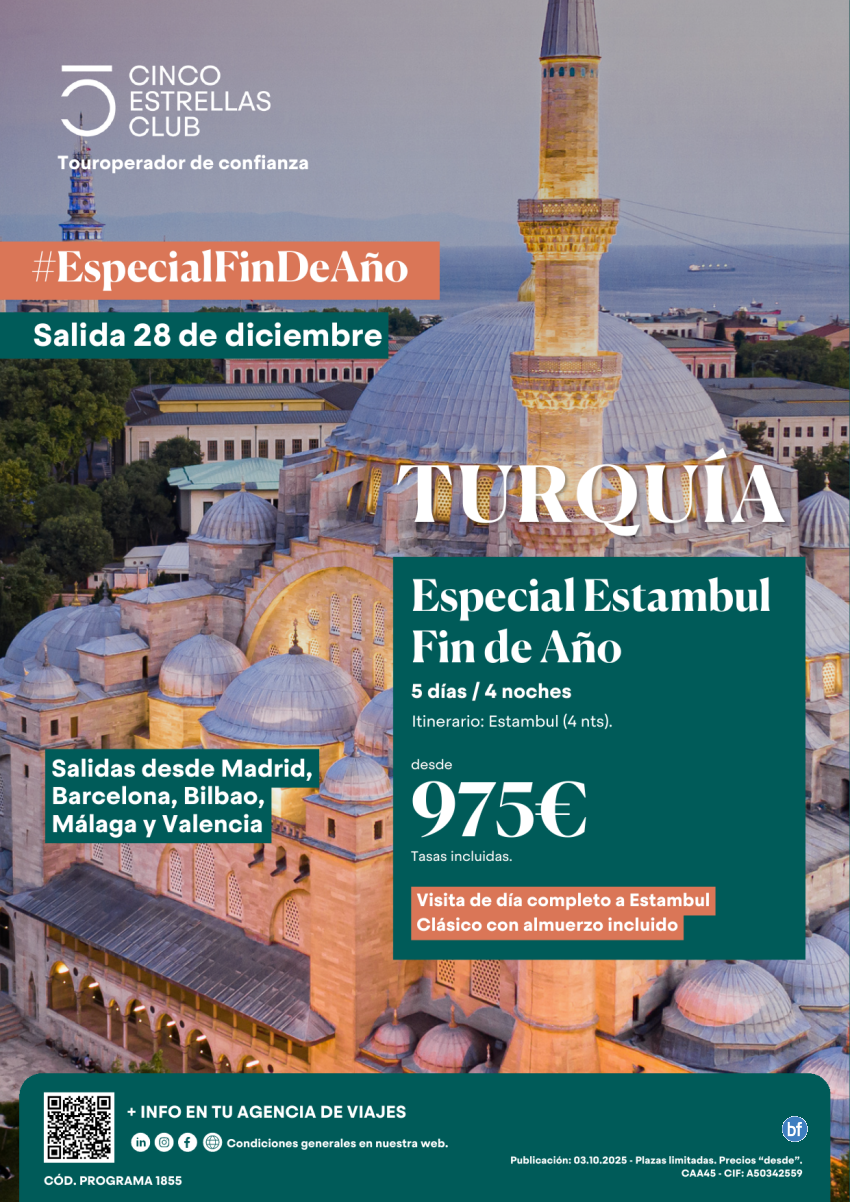 Esp. Fin Año en Estambul 5ds/4ns dsd 975€ sal. 28 dic dsd Mad,Bcn, Bio, Agp,Vlc -incluye visita día completo