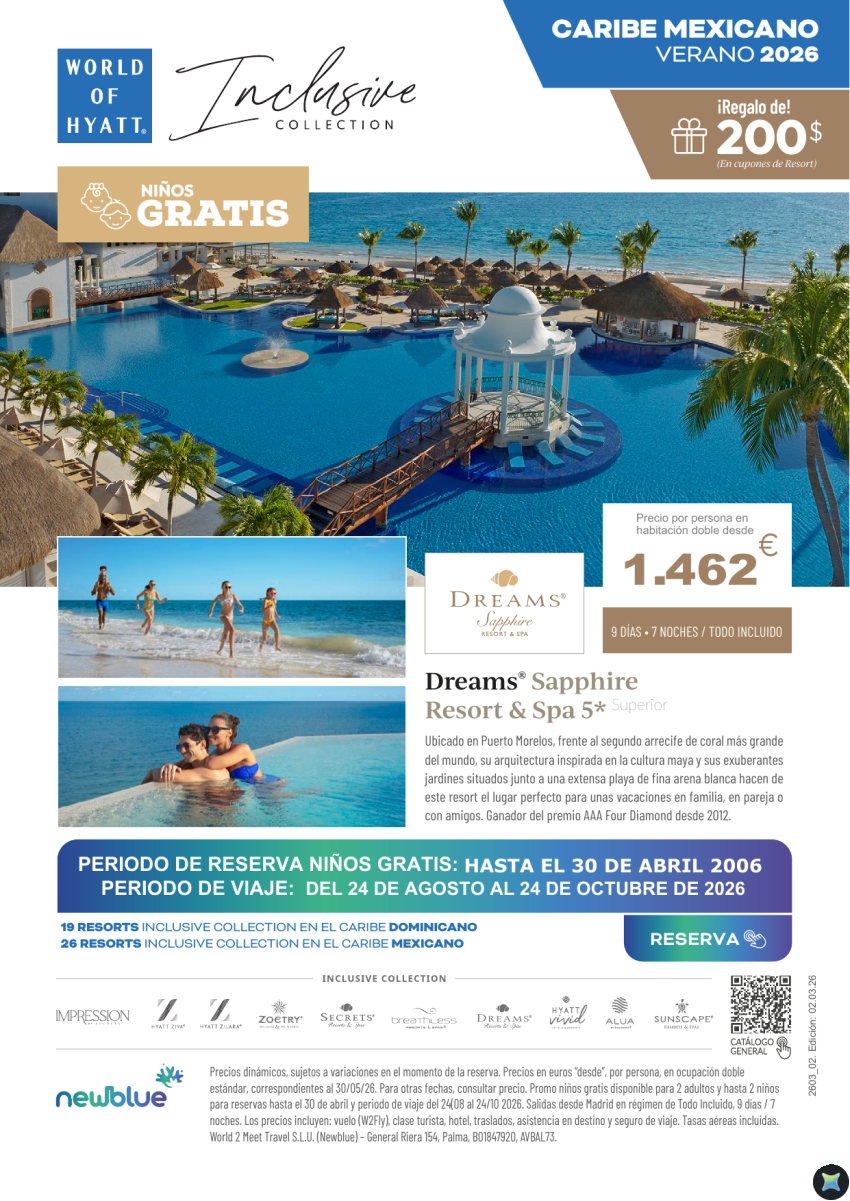 Uno de los mejores Resorts T.I de Riviera Maya. Dreams Sapphire 5* desde 1.462€ 9D/7N
